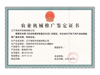 В результате многолетнего сосредоточенного исследования ООО Ляонинская машиностроительная компания ?Хайдишэн? разработала зерносушилку, которая применяется в сушении риса, кукурузы, ячменя, пшеницы и других видов зерна. В сушилке применена передовая техники, характеризуется высокой степенью автоматизации, несложностью и надежностью в работе, низким уровнем шума и вибрации, экономией топлива, коротким времени сушения. По сравнению с другими оборудованиями с одинаковой производительностью размер экономии энергии составляет 20-25%.